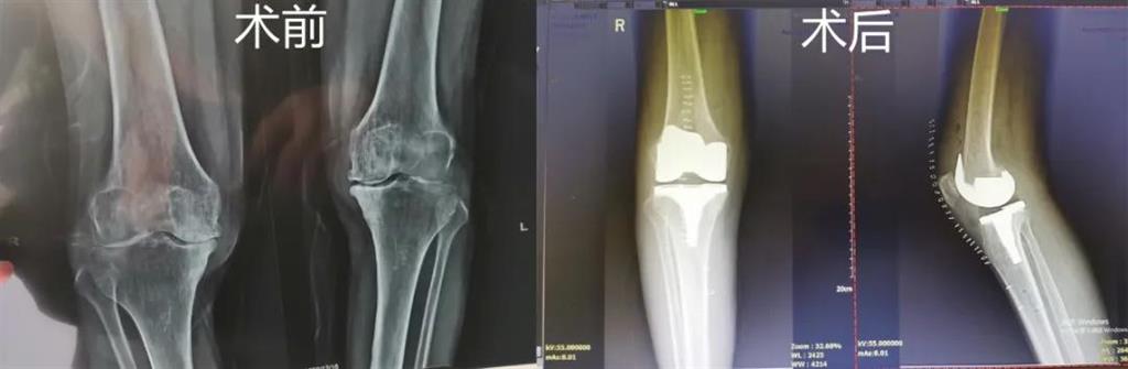 和平國際醫(yī)院副院長、骨科中心主任劉丹在診斷后發(fā)現(xiàn),老人雙側(cè)膝關(guān)節(jié)患有骨性關(guān)節(jié)炎,右側(cè)膝關(guān)節(jié)較為嚴(yán)重,而且關(guān)節(jié)磨損嚴(yán)重,關(guān)節(jié)間隙基本消失。
