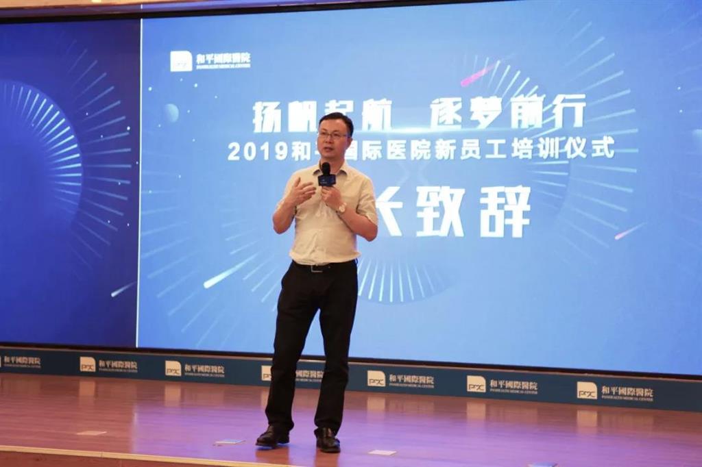 2019年9月11日,和平國際醫(yī)院新員工培訓(xùn)儀式在5樓會議廳舉行。和平醫(yī)療投資集團(tuán)董事長,和平國際醫(yī)院院長薛志輝,副院長劉丹、周健、蘇苗欣以及各相關(guān)職能部門主要負(fù)責(zé)人出席此次活動(dòng)。