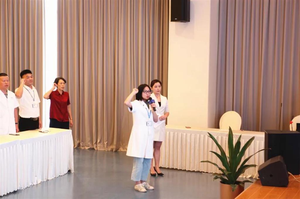 緊接著,口腔科醫(yī)生林文君作為新員工代表帶領(lǐng)全體新員工宣誓。