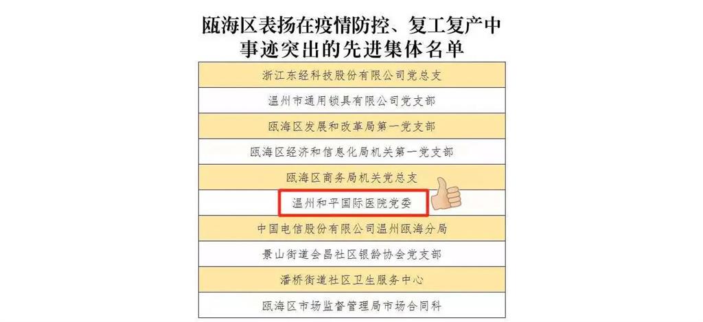 醫院在疫情防控、復工復產中表現突出,被甌海區委區政府通報表彰。