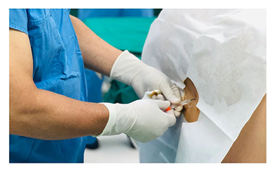 較厚的脂肪層考驗著麻醉師的“功力”,平時僅需推進幾厘米的麻醉穿刺針在注入李女士腰椎時,外部只留下了短短一截。