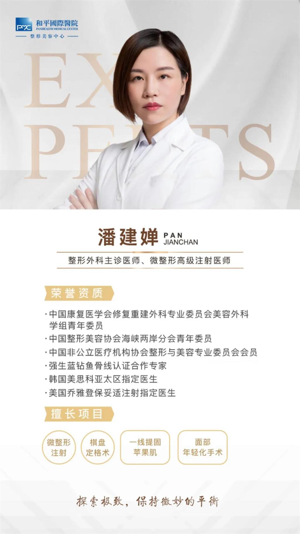 潘建嬋醫生作為喬雅登、保妥適等指定注射專家,始終堅持精煉注射技藝,立足新潮觀念和前沿科技,結合獨特的美學設計理念,為廣大求美者定制個性化塑美方案,帶來高定的美麗煥變。