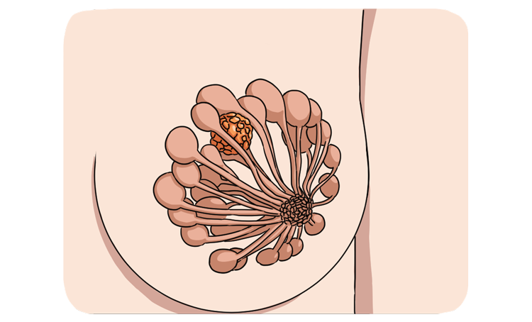 乳房脹痛、乳房出現腫塊、乳房皮膚像橘皮一樣坑坑洼洼、乳頭凹陷、乳暈皮膚瘙癢脫皮