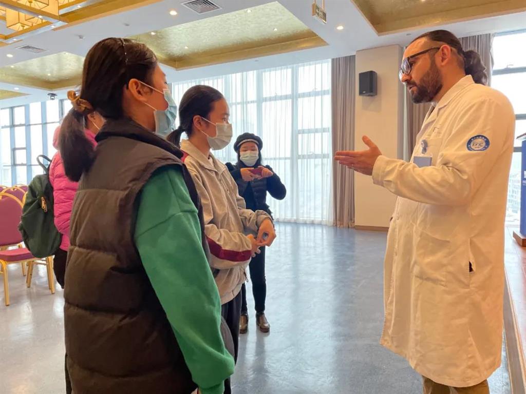 “I also want to be a doctor, What should I do?”活動(dòng)結(jié)束后,同學(xué)們向豪孟德提問(wèn)。“You need to study hard to get into a good school and become an excellent doctor。”豪孟德鼓勵(lì)他們努力學(xué)習(xí),長(zhǎng)大后成為一名優(yōu)秀的醫(yī)生。