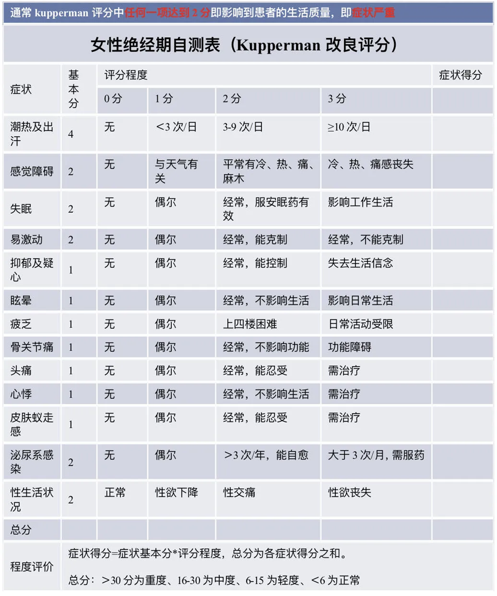 可采用女性絕經期自測表自測