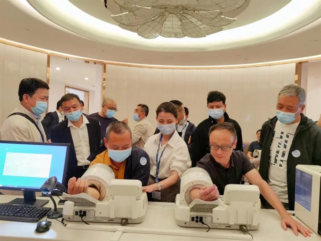 在參觀體檢中心時,參觀人員還體驗了血糖、血壓的測量。
