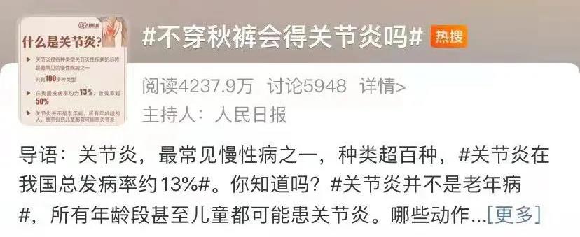 但是,關節炎的患者如果天冷不穿秋褲,會造成癥狀的加重。