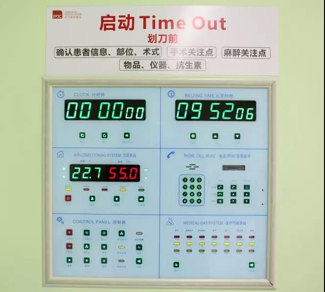 手術室門口的墻壁上嵌入了一個多功能控制面板,可以調(diào)溫、濕度,放音樂,打電話,計時等,這些小功能都非常便捷。