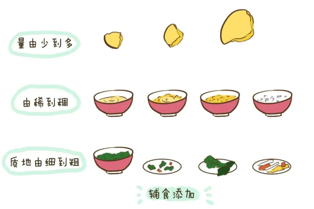 建議寶寶每天喝奶800毫升(每個寶寶奶量有差距,胃口有大有小,視具體情況而定),在奶量不減少的情況下添加1~2餐碎狀食物。新食物引進建議安排在午飯之前。剛剛開始加輔食,一天吃幾頓輔食,什么時候喂不要太教條。但有一個原則就是,要既不影響喝奶,也不耽誤練習吃輔食。